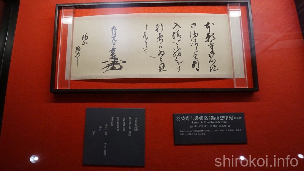 複製ですが秀吉の書状も。秀吉の花押、かっこいいんだよな。